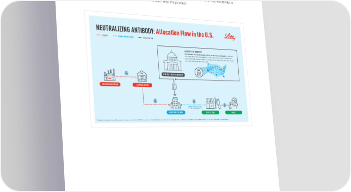 Flow of Allocated Product Below is a depiction of the basic flow of allocated product. Through a government allocation program, the Federal Government, in partnership with state health departments, will provide the contracted distributor, AmerisourceBergen, with a list of infusion sites of care approved for a product allocation on a periodic basis. The distributor will then contact the approved infusion sites of care, confirm they would like to receive the allocated amount of product and then ship the product. NEUTRALIZING ANTIBODY: Allocation Flow in the U.S. Lilly Role Naioal Diio Role Go ee Role ALLOCATION OF INVENTORY The Federal Government is responsible for the appropriate allocation to state and territory health departments based on COVID-19 prevalence rates*. These health departments will provide Amerisorceeren a list o selected insion sites o care to receive desinated doses each wee. FEDERAL + STATE GOVERNMENT LILLY MANUFACTURING LILLY WAREHOUSE OVERNIGHT SHIPPING if Provider confirms order by 3 PM AMERISOURCEBERGEN SITES OF CARE PATIENT *eely allocation decisions will be proportionally based on conirmed COVID-19 cases in each state and territory over the previos seven days based on data rom the .€. Department o ‚ealth and ‚man €ervicesƒ „rotect data collection platorm. Lilly Bamlanivimab Antibody Playbook | 14 PP-BM-US-0024