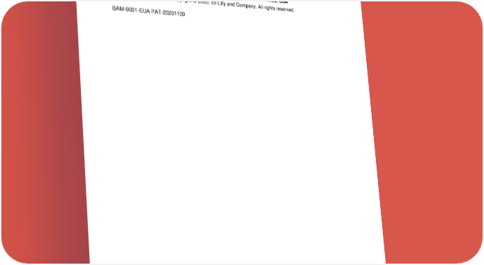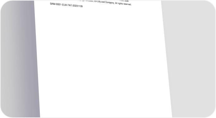 The EUA for bamlanivimab is in effect for the duration of the COVID-19 declaration justifying emergency use of these products, unless terminated or revoked (after which the product may no longer be used). Literature issued November 2020 Eli Lilly and Company, Indianapolis, IN 46285, USA Copyright © 2020, Eli Lilly and Company. All rights reserved. BAM-0001-EUA PAT-20201109 3
