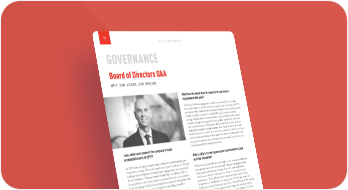32 ELI LILLY AND COMPANY GOVERNANCE Board of Directors Q&A WITH JUAN LUCIANO, LEAD DIRECTOR What has the board done in response to shareholder engagement this year? The board believes engagement with our shareholders and other key stakeholders is central to how we govern the company. In 2019, we spoke with a number of investors on topics such as proxy access; eliminating the company’s classified board and supermajority voting requirements; environmental, social and governance topics including drug pricing and product quality and safety; our board and corporate culture; litigation and key enterprise risks; and the company’s executive compensation. As a result of input from our shareholders, we recently amended the company’s bylaws to include proxy access provisions. Once again, the board is putting forward management proposals to eliminate the classified board structure Juan, what were some of the company’s major and supermajority voting provisions. accomplishments in 2019? Why is Lilly’s current governance structure best suited In 2019, the company made major strides in implementing our to drive innovation? long-term strategy. We made significant pipeline advances. We also had significant business development engagement: we completed We’re dedicated to effective oversight of our business and believe the divestiture of Elanco Animal Health Inc., enabling Lilly to that governance is key to the board’s effective oversight of our focus solely on its human pharmaceutical business, and acquired long-term performance, strategy, key risks and compliance. Loxo Oncology, which is the largest in a series of transactions the Our board believes independence is key to strong corporate company has conducted to broaden its oncology portfolio. governance. The dual roles of an executive chair and a strong, independent lead director are important in balancing inputs to We also introduced Insulin Lispro, a lower-priced version of the board. As our Chairman and CEO, Dave Ricks provides strong Humalog®, in the U.S., providing patients with diabetes an insulin operational leadership coupled with a long-term strategic agenda. option with a list price 50% lower than the current Humalog list This is vital to our innovative research and development business, price. We’ve continued this approach in 2020, adding two versions which has prolonged product development cycles. Further, of the Humalog KwikPen® to our lower-priced insulin solutions. leveraging my experience as the CEO for a Fortune 100 company, Going forward in 2020, pricing and the dynamic health care I lead the independent directors in their analysis of company environment, particularly in the U.S., will continue to be of decisions and performance and in the other elements of our particular focus to the board. Also, the board will continue to important oversight function for the company. focus in 2020 on ensuring a robust pipeline, through both internal and external innovation, and execution on our key business priorities.